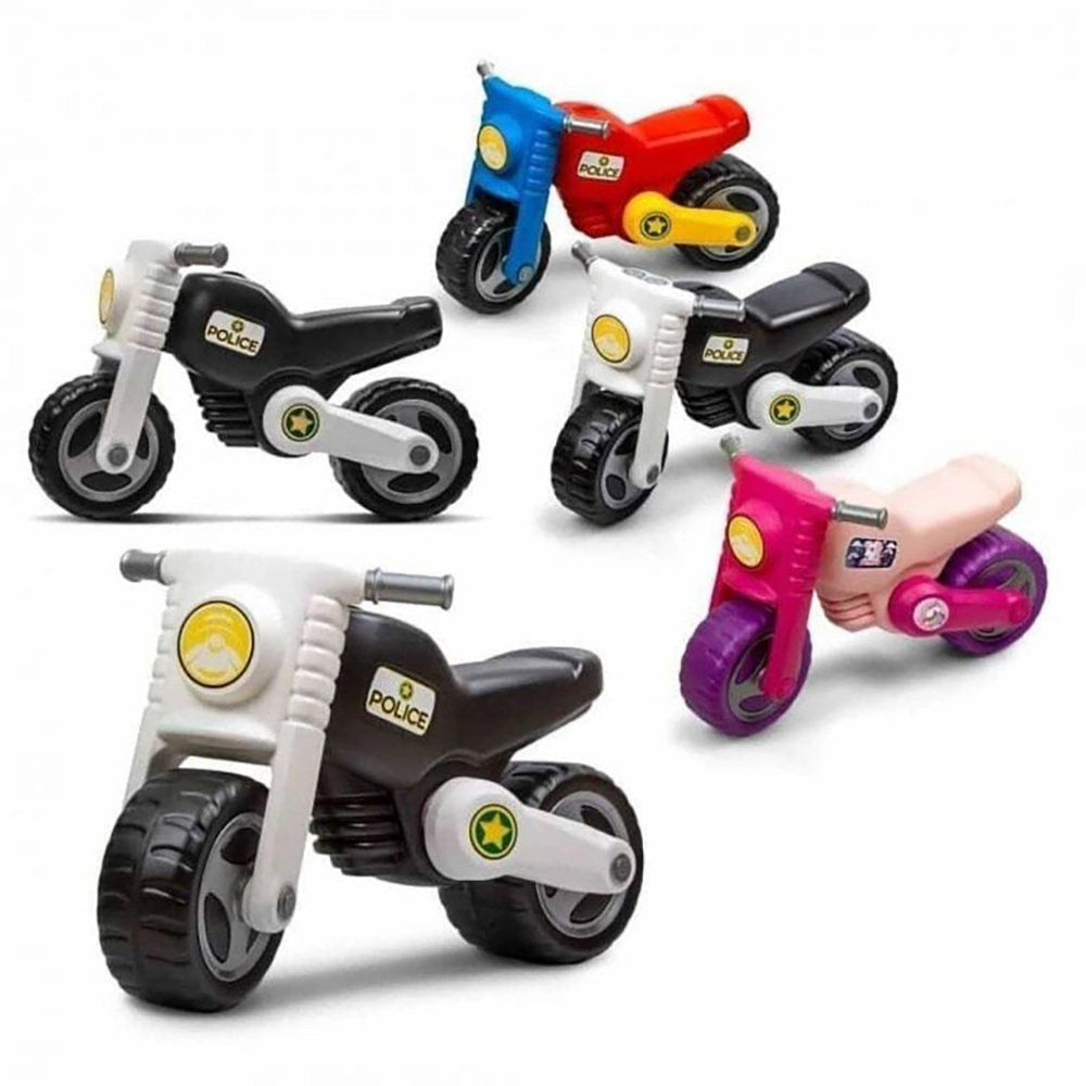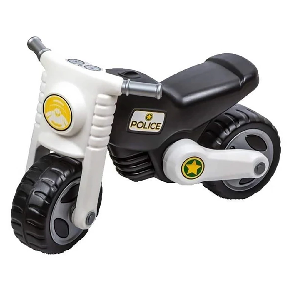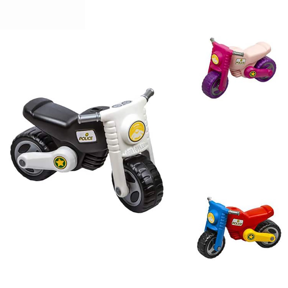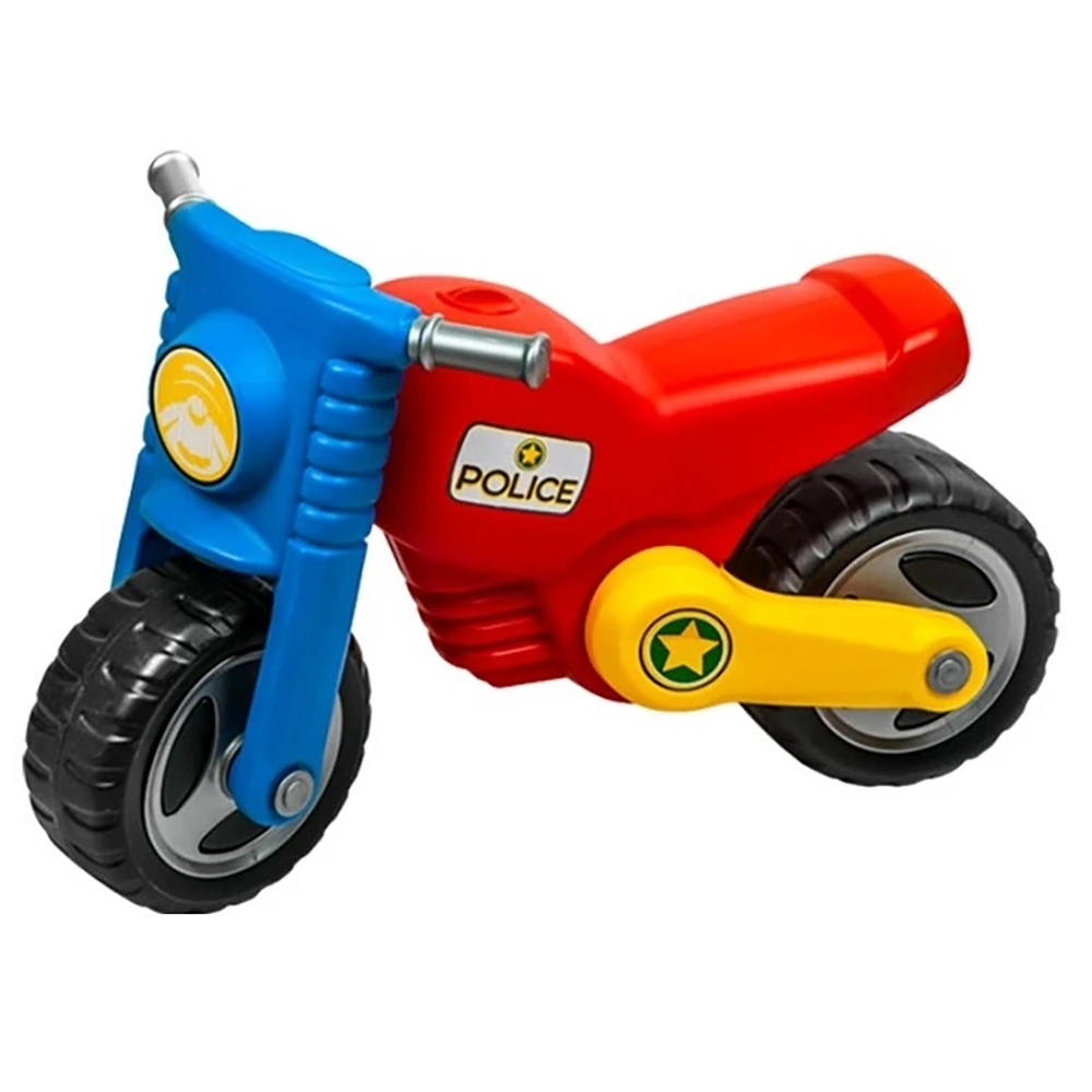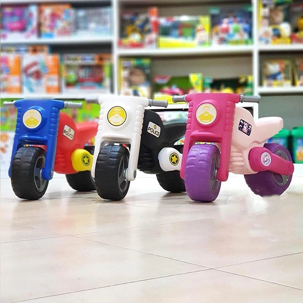 این موتور اسباب بازی مخصوص سنین 3 تا 5 سال طراحی شده است و پدال ندارد. کودک باید با کشیدن پا روی زمین و حفظ تعادل خود باید موتور را به حرکت در آورد. این نوع حرکت باعث تقویت عضلات پای کودک و توانایی حفظ تعادل در او میشود که در مجموع باعث تقویت مهارت های حرکتی او خواهد شد. علاوه بر مهارت های حرکتی، کودک با نقش بازی در نقش یک موتورسوار درخواهد آمد و مهارت خیال پردازی در او تقویت خواهد شد.