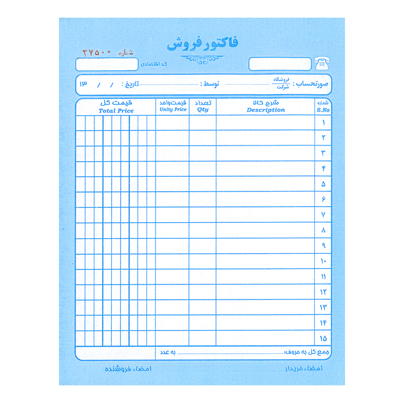دسته فاکتور سایز بزرگ 2 برگی بدون کاربن