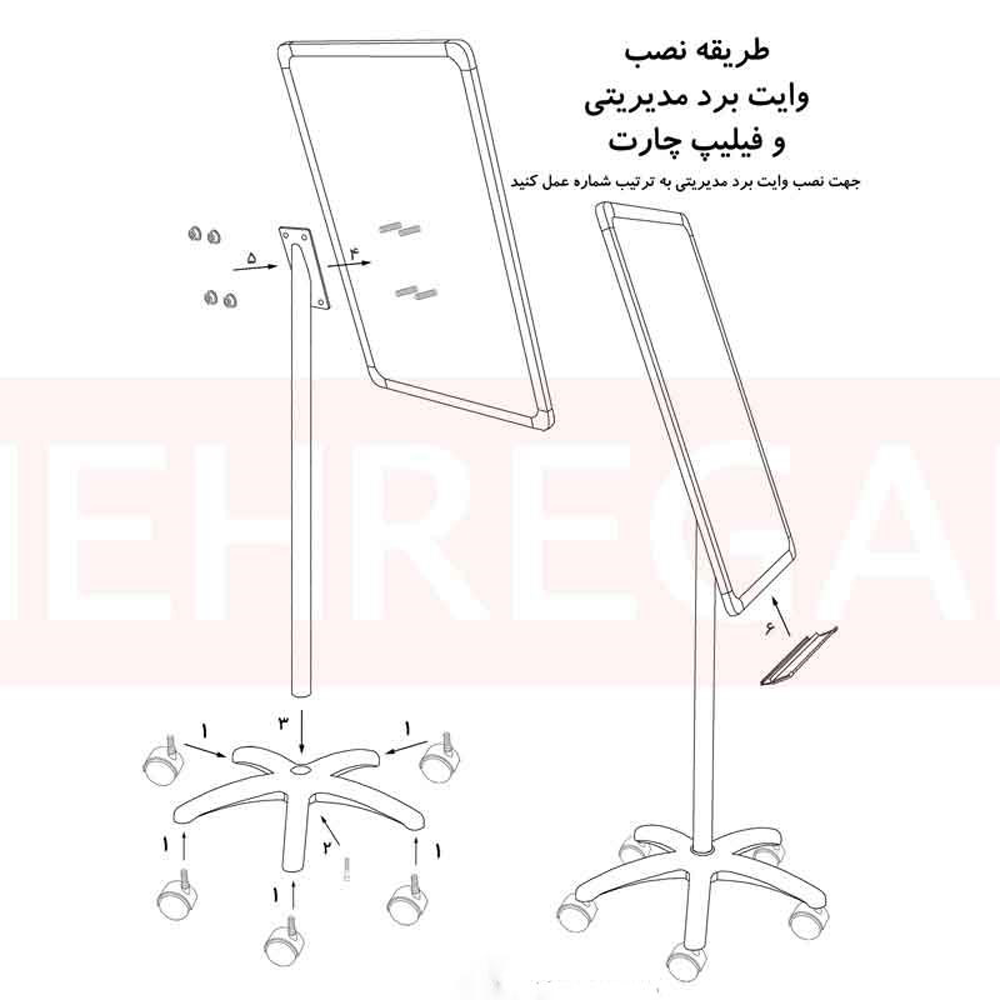 وایت برد مدیریتی مهرگان دارای پایه پنج پر و بدون ترمزجهت جابجایی راحت و سریع می باشد.