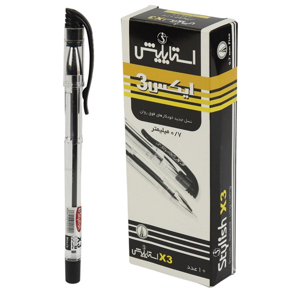 خودکار مشکی استایلیش مدل X3 نوک 0.7 میلی متر بسته 10 عددی
