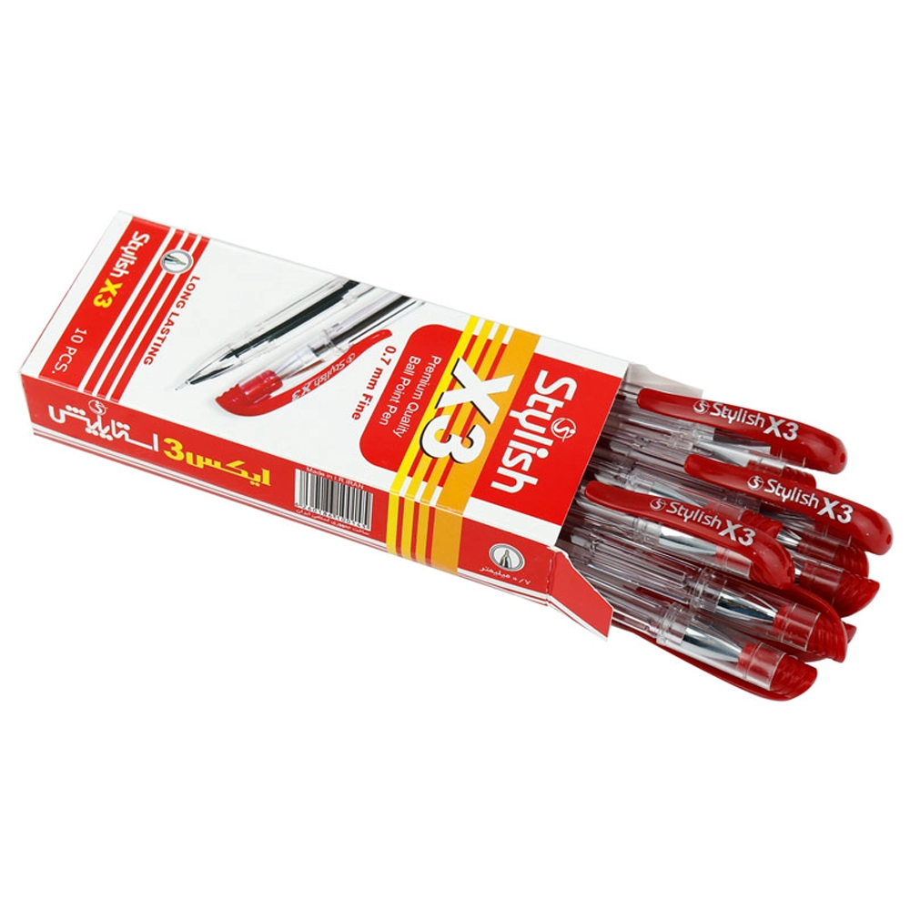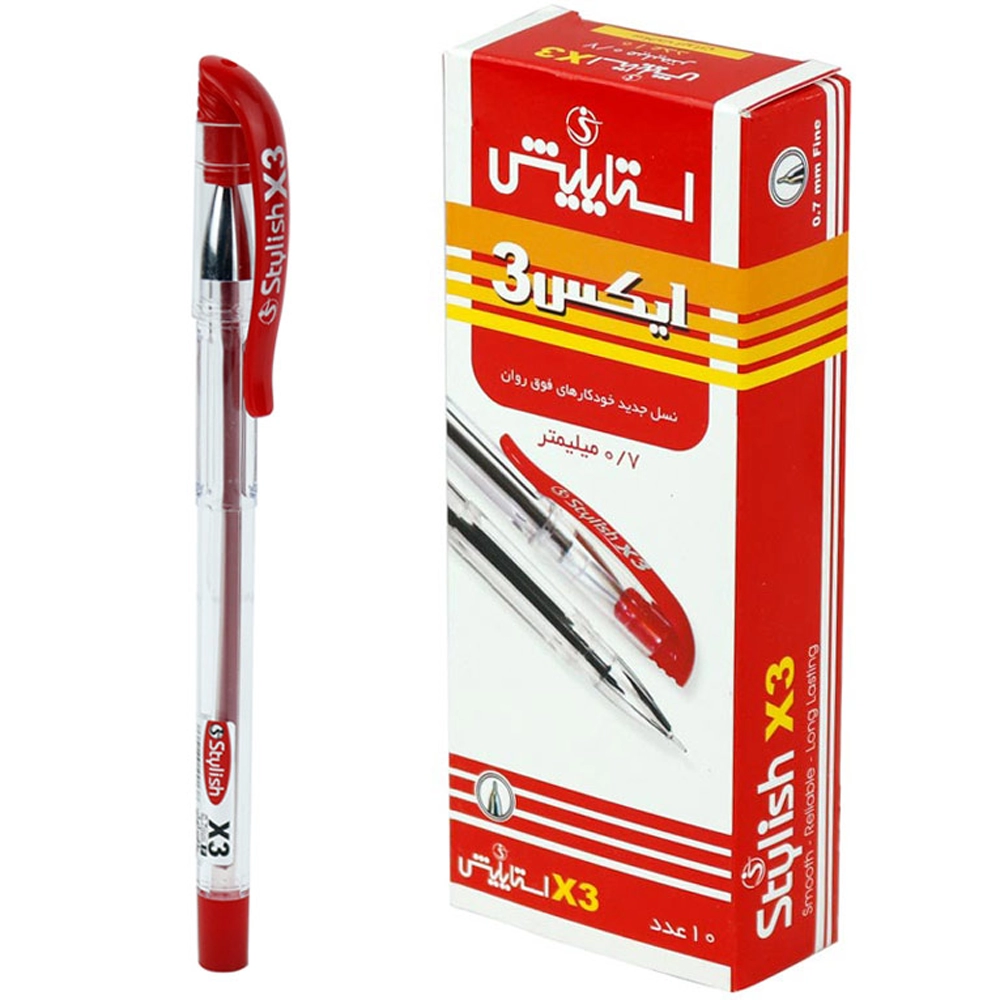 خودکار قرمز استایلیش مدل X3 نوک 0.7 میلی متر بسته 10 عددی