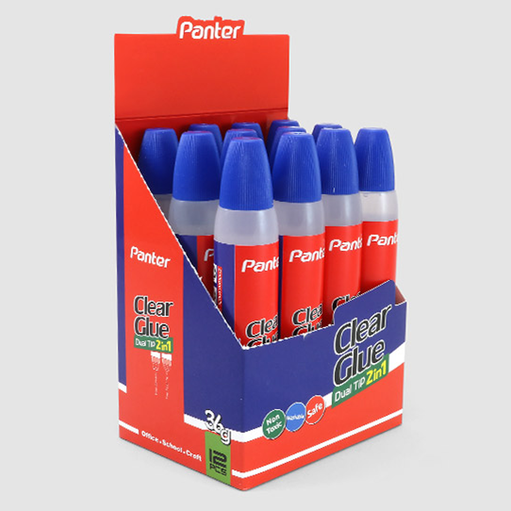 این چسب مایع شفاف پنتر بدون بو با قدرت چسبندگی مطلوب می باشد و دارای مخزن 36 گرمی با دو سر خروج چسب در دو انتها است و فاقد مواد سمی و مضر بر پایه آب یا Water Base با قابلیت خشک شوندگی سریع و بدون لکه پس از استفاده است و قابل استفاده برروی سطوح کاغذ، مقوا، چوب وسایر سطوح مشابه می باشد و بسیار مناسب برای مصارف عمومی ، صنعتی ، اداری، دانش آموزی و هنری و ساخت انواع کاردستی و ماکت می باشد.