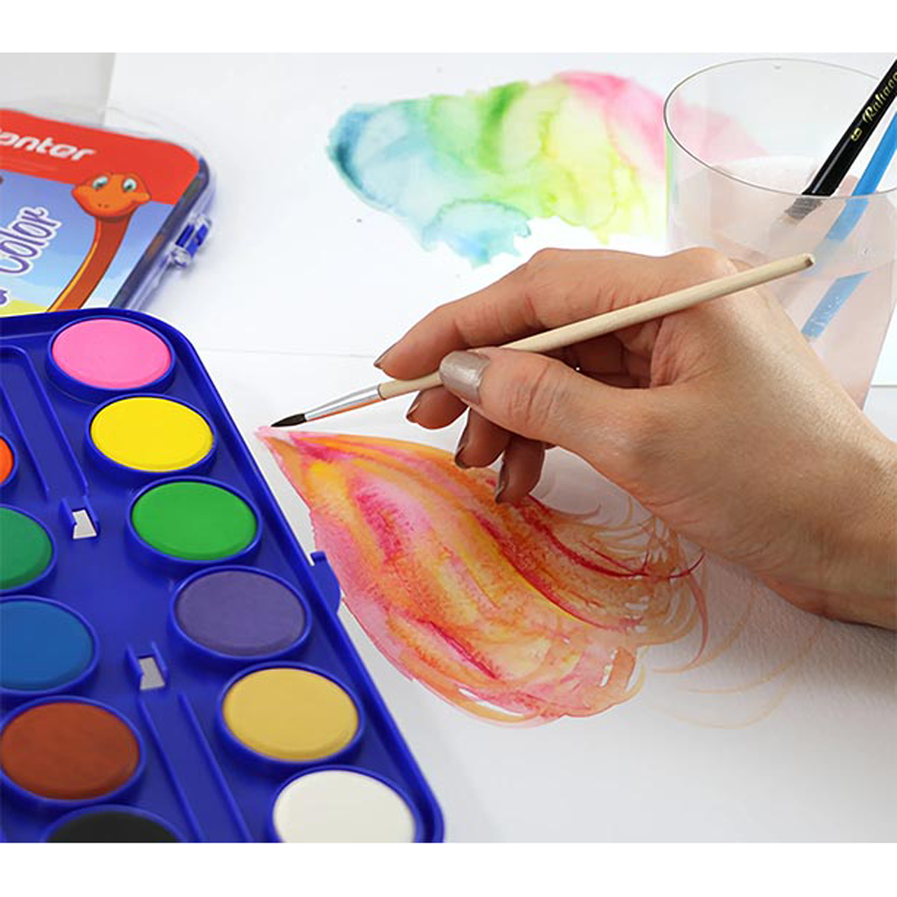 این آبرنگ دارای 12 رنگ جذاب و پرکاربرد می باشد و همچنین دارای قلمو برخوردار از کیفیت مطلوب در بسته بندی کاربردی می باشد و ساخته شده از مواد اولیه مطلوب، غیر سمی و آب پایه یا Water Base و دارای قابلیت ترکیب رنگ ها و خلق رنگهای جدید و جذاب می باشد و بسیار مناسب برای استفاده کودکان ، دانش آموزان وهنرمندان می باشد.“محصولات پنتر” ازبهترین برندهای “لوازم التحریر” د بازار ایران می باشد و قابل رقابت با محصولات خارجی می باشد.